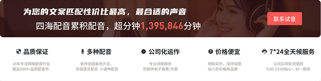 注:價格不含稅,咨詢客服本站標注配音價格供參考,客服有權根據實際稿子難度計價,每位老師均有起錄價。